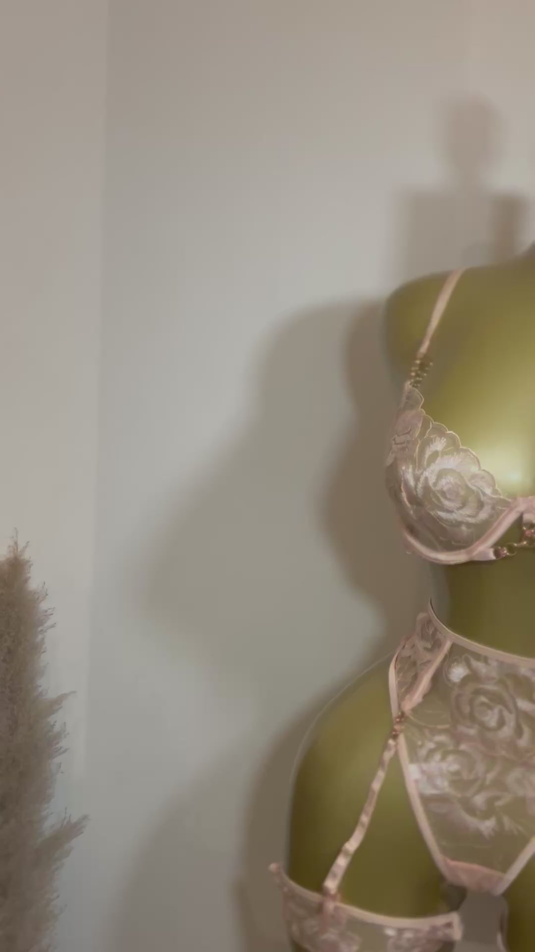 L’ensemble Djaka dévoile une séduction éclatante et raffinée. Composé d’un soutien-gorge, d’un string délicat et d’un porte-jarretelles. Sa dentelle rose illumine la peau d’un éclat rosé, dessinant une silhouette à la fois audacieuse et délicate.
